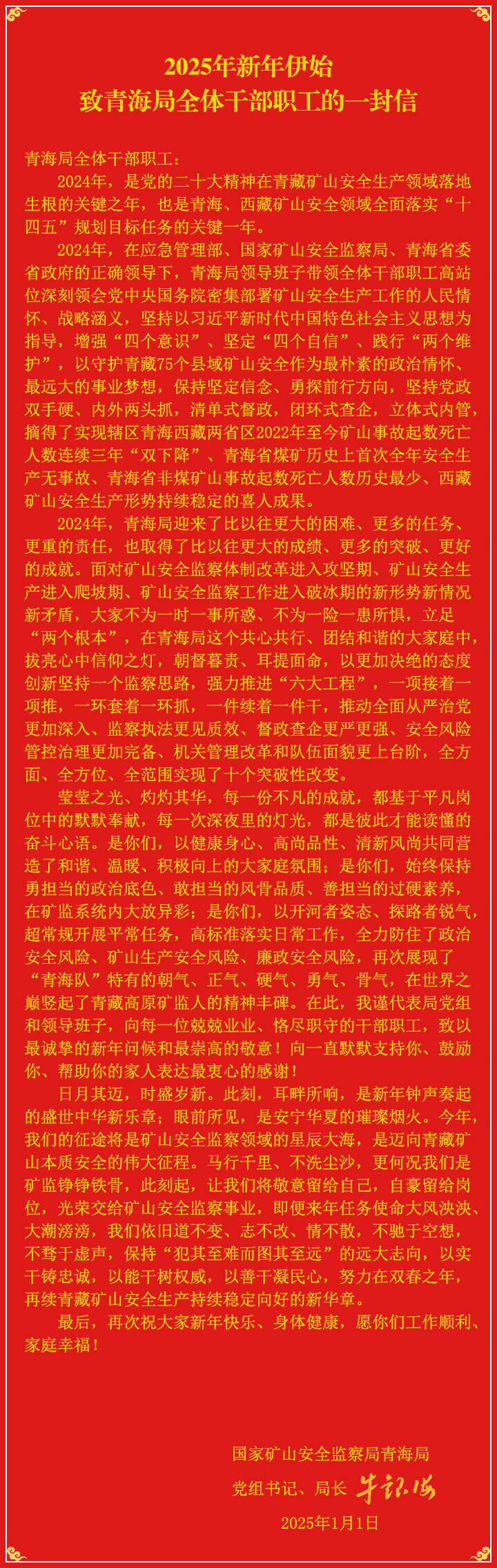 牛银海局长2025年新年伊始致青海局全体干部职工的一封信